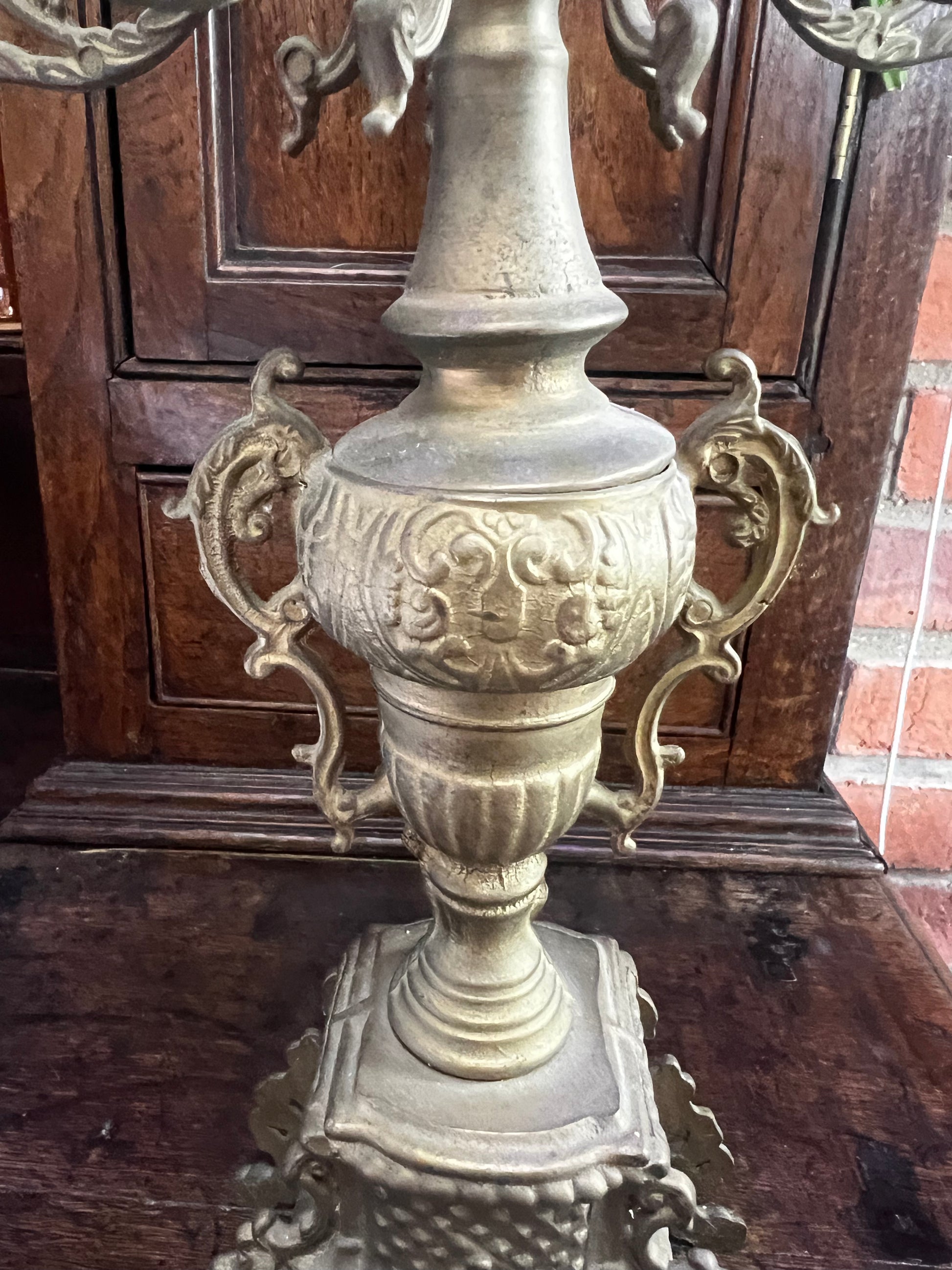 A beautiful couple of ornate brass Candle Holders from a Roman Villa. Art Nouveau Style Stylish Candelabra 5 arm.