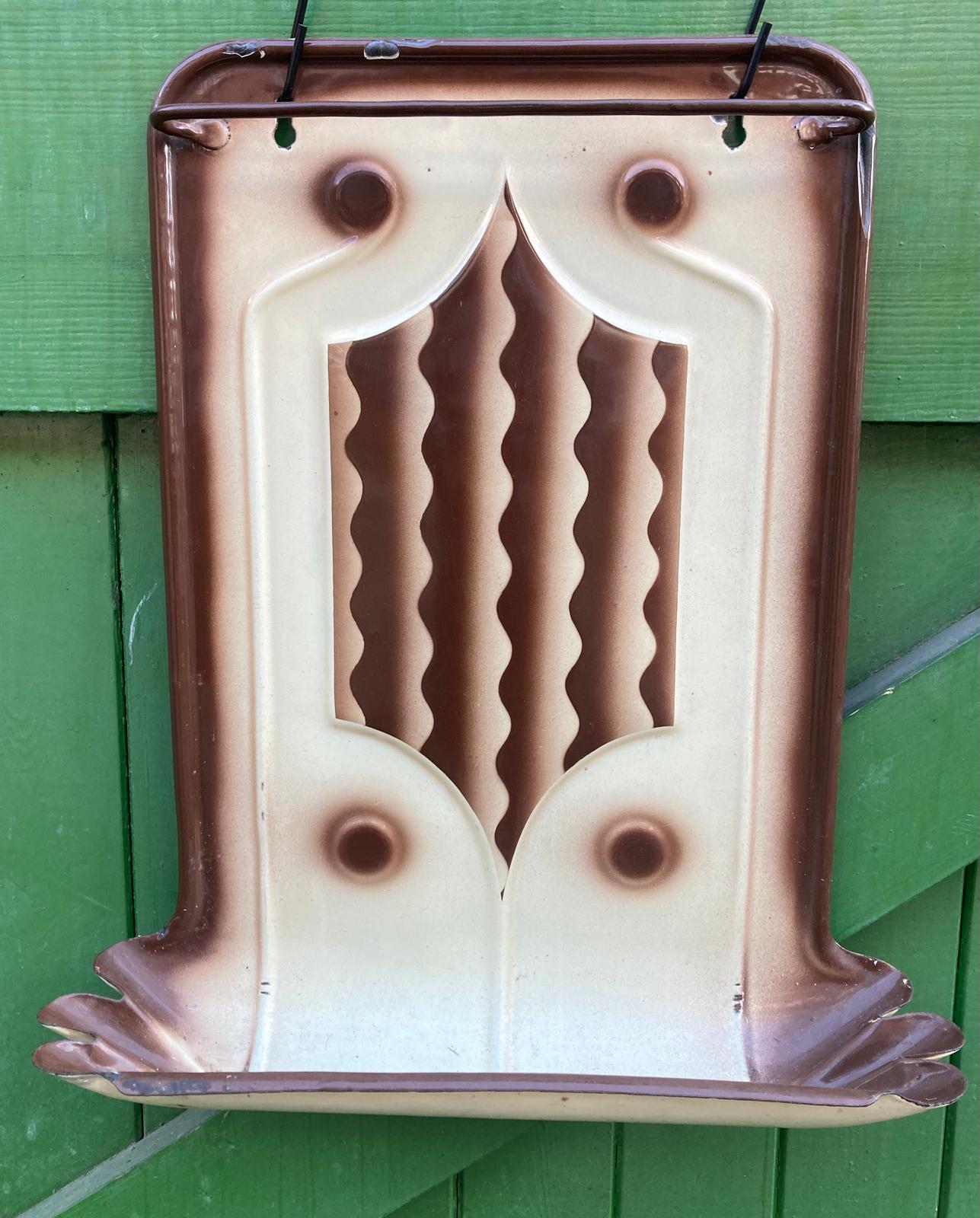 Sourced in Paris, our Cream and Brown Enamel Kitchen Utensil Rack. With a charming 1970's style, the unusual colour combination and symmetrical wave design, this rack is perfect for presenting your utensils and keeping them within reach.